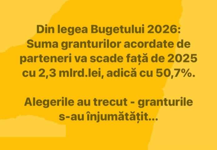 Бывший премьер-министр Ион Кику обратил внимание, что в 2026 году объём грантов, предоставляемых Молдове международными партнёрами, сократится наполовину по сравнению с 2025 годом.
