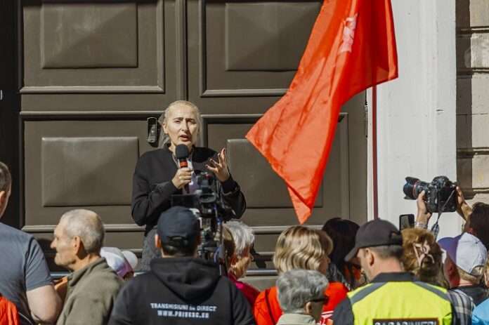 Во время протеста у здания Центральной избирательной комиссии муниципальный советник ПСРМ Алла Урсу-Анточ выступила с резкой критикой действий комиссии и правящей партии PAS.